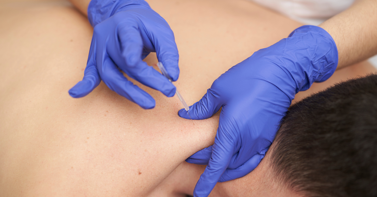 When using dry needling, Glaser, once he locates a trigger point, inserts a thin, sharp needle through the skin. Stimulating trigger points with a needle helps draw normal blood supply back to clear the affected area and release tension. The prick sensation can also fire off nerve fibers that stimulate your brain.
